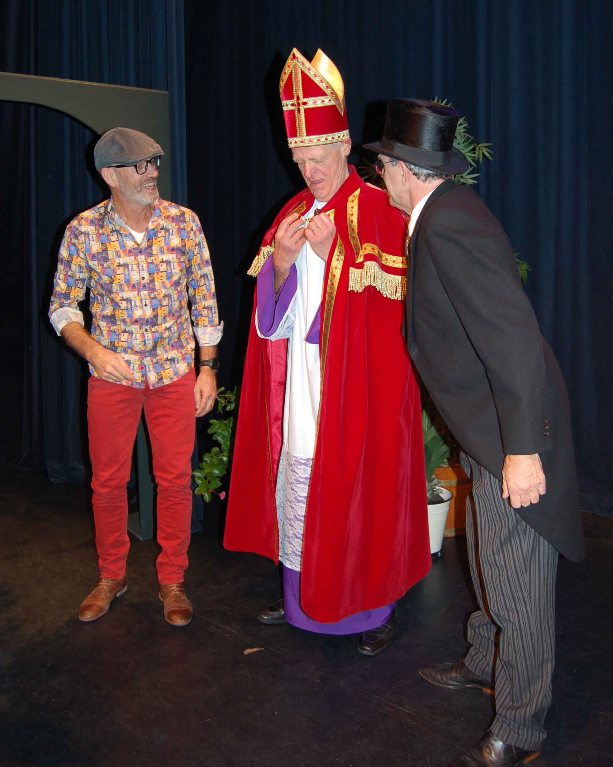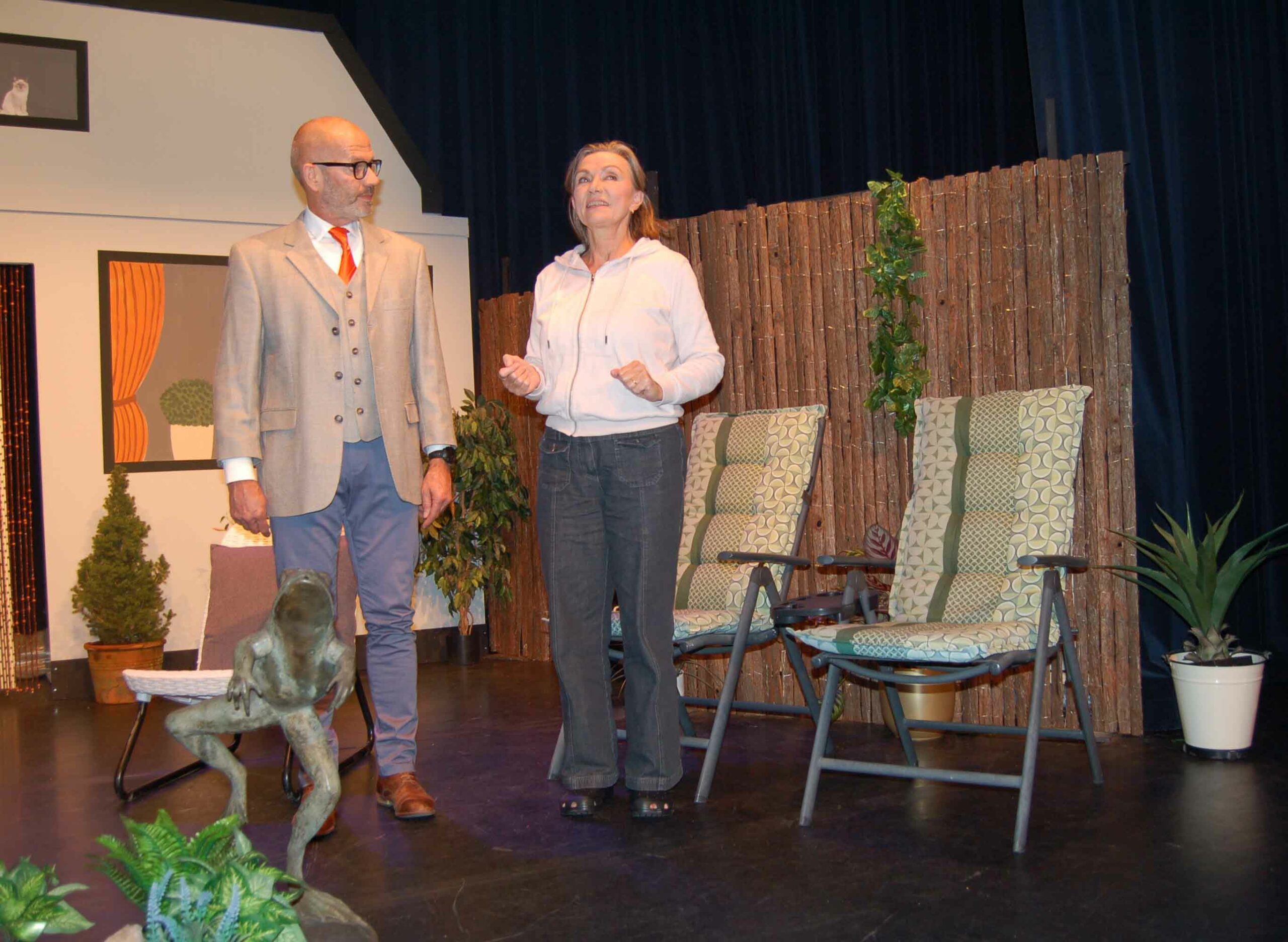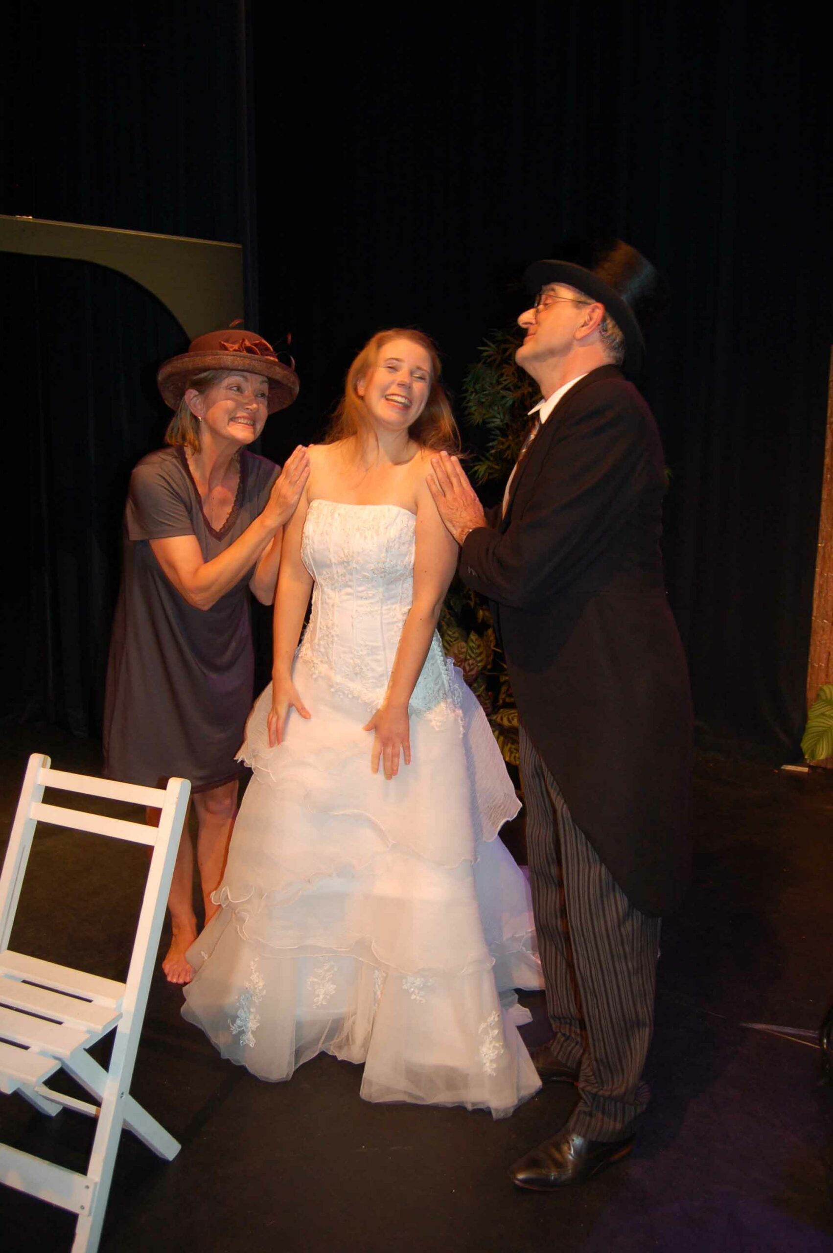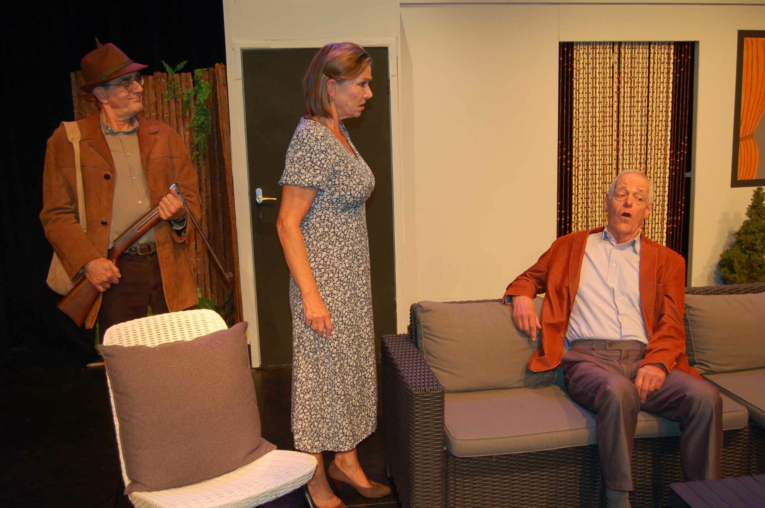 Erg inspirerend om te zien hoe een toneel vol met tekst- en rolvaste spelers duidelijkheid kan scheppen in twee dimensies: een zeer aan elkaar gewaagde grote cast waarin de stuntelige, toch meer dan professioneel(!) bezorgde arts (Richard van Delft) erg leuk uit de verf kwam. Cily Banus een drabbige, hysterische schoonzuster om te smullen neer zette en Hans van Amsterdam met verve de dominerende echtgenoot vertolkte. Wanneer tegen de finale de gehele groep als schitterend uitgedoste schertsfiguren uit een boze droom ten tonele verschijnt is de verwarring compleet.