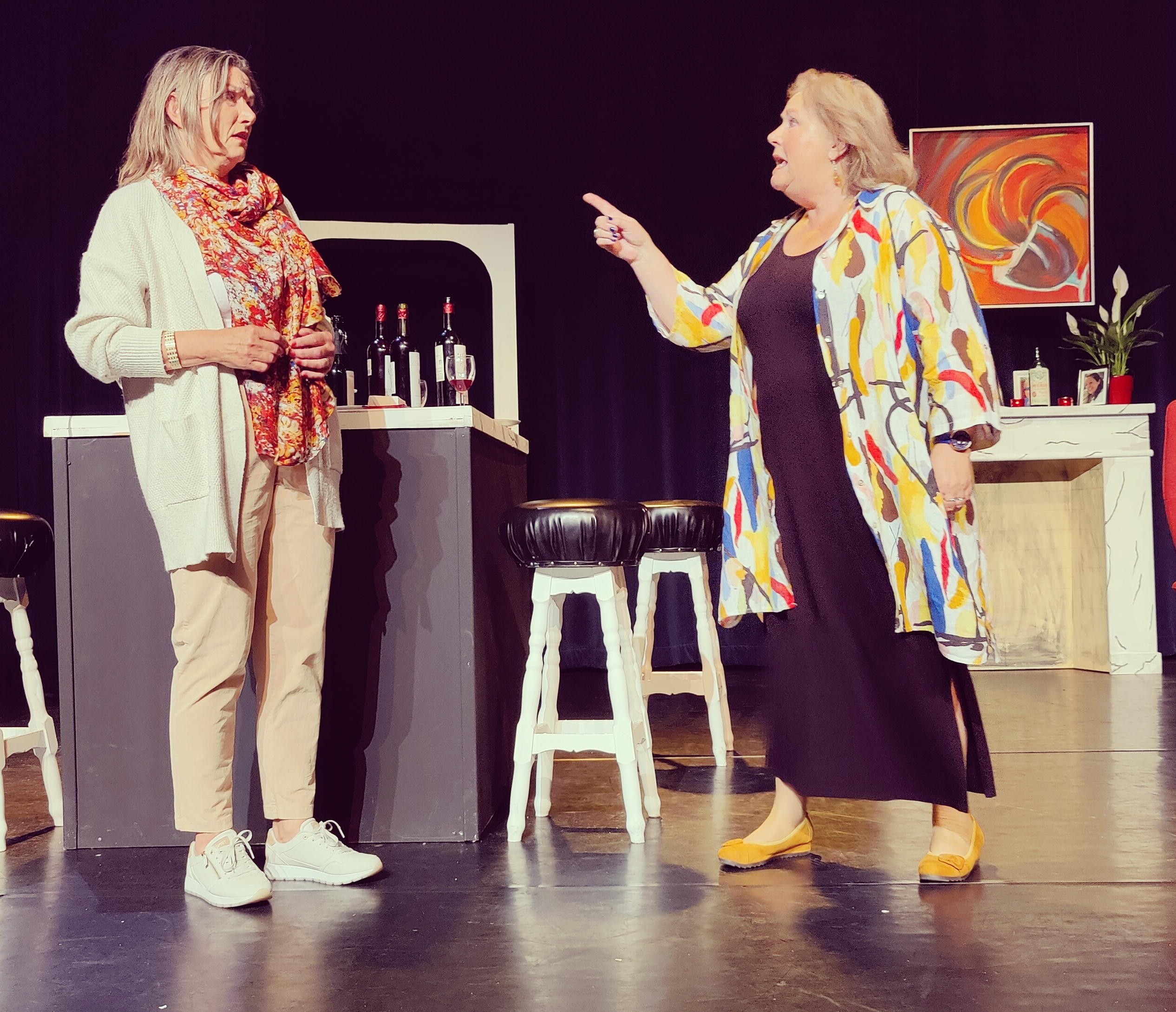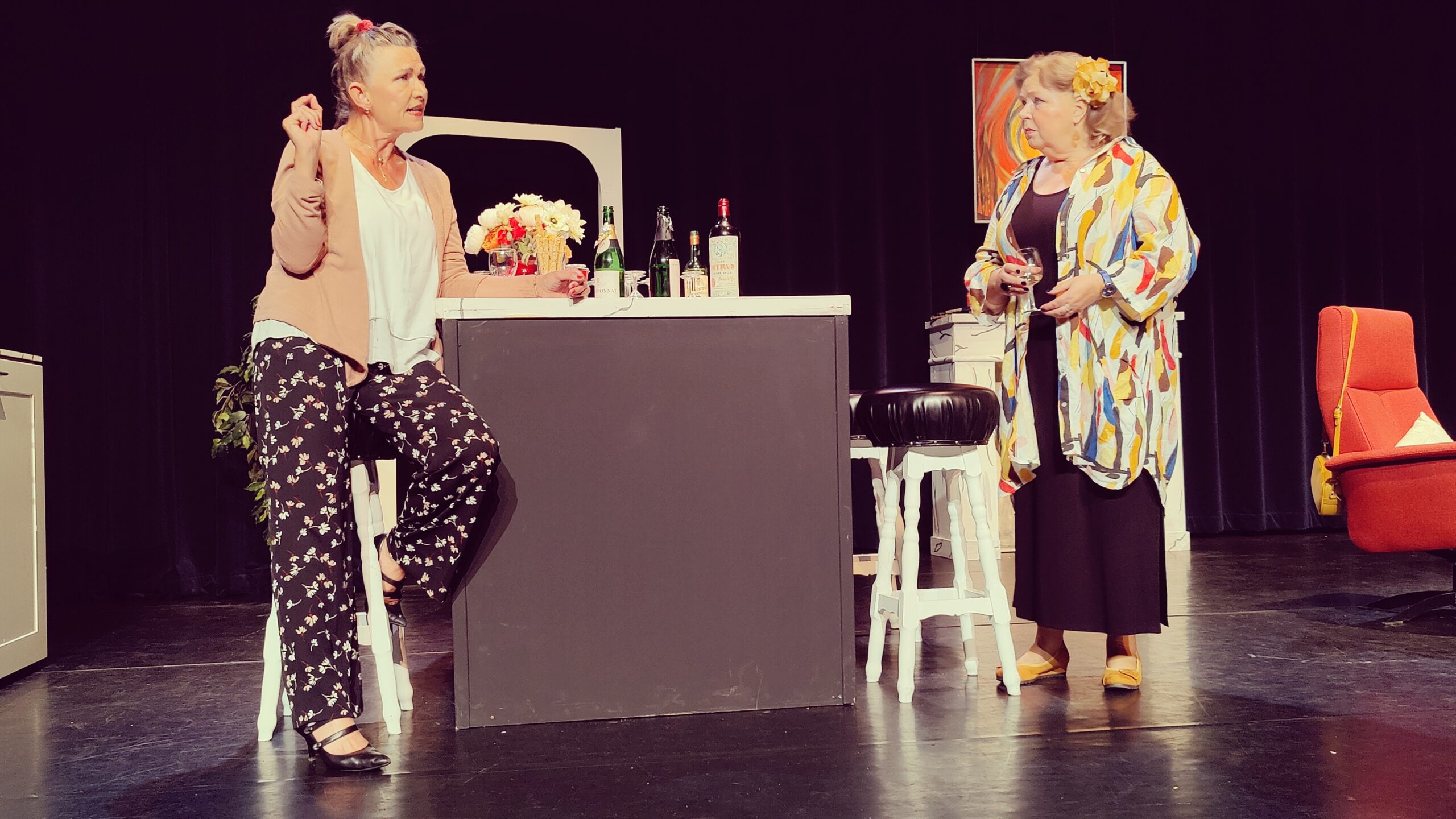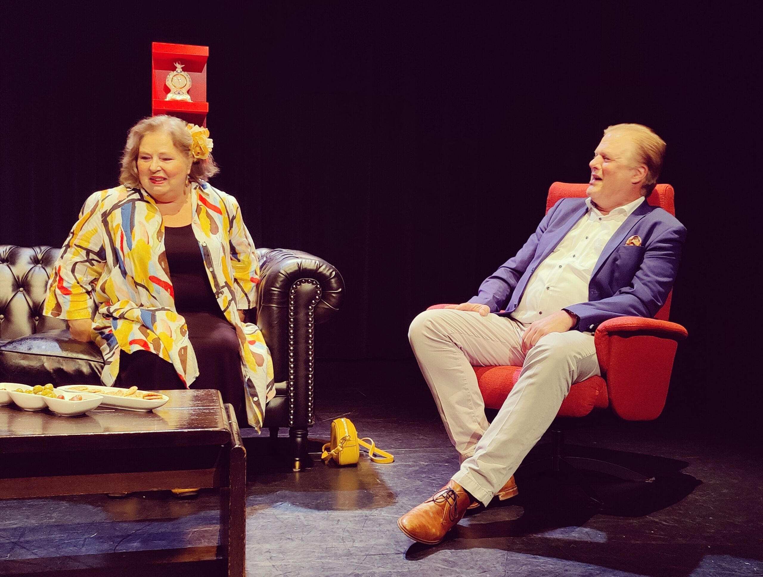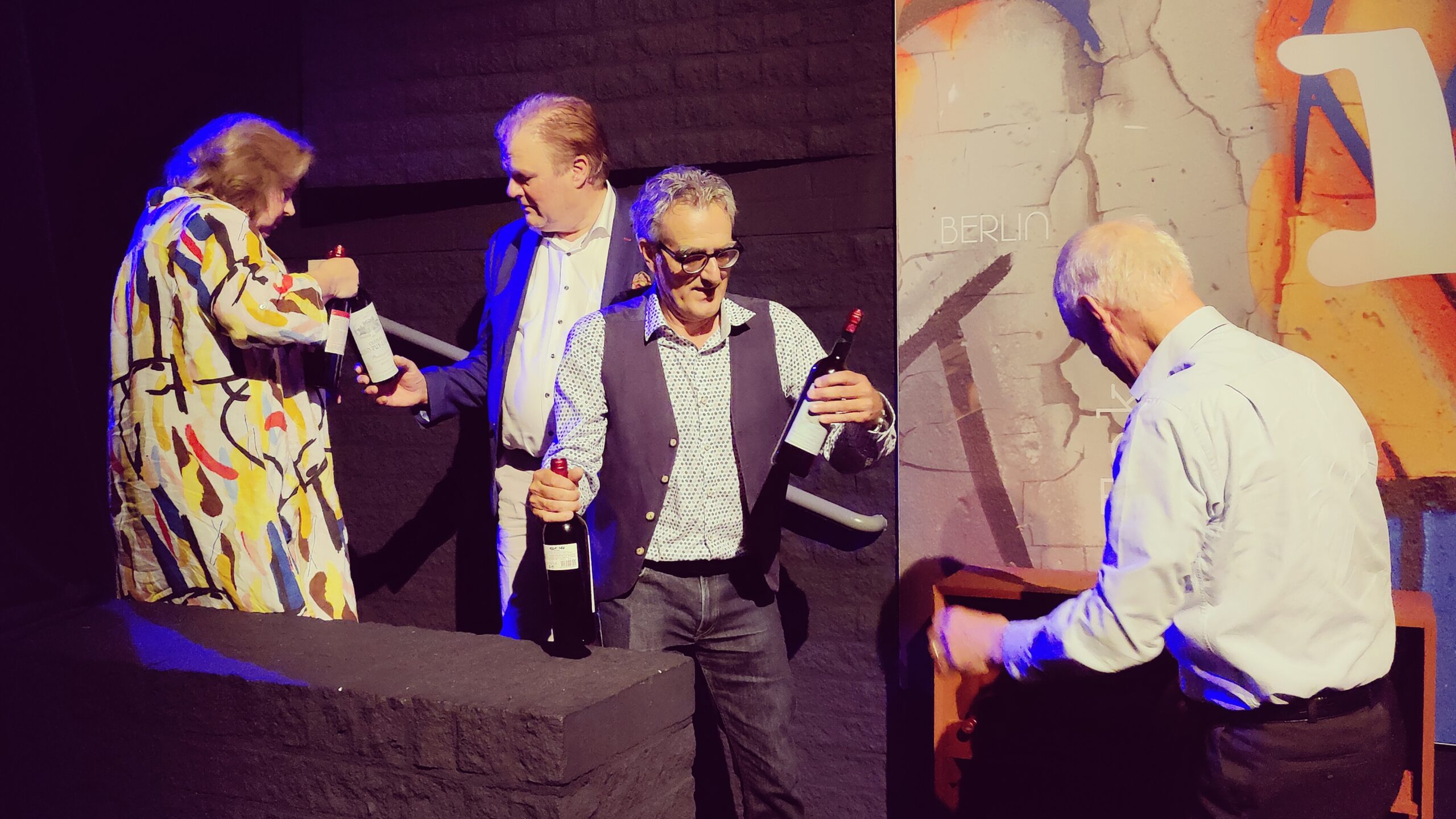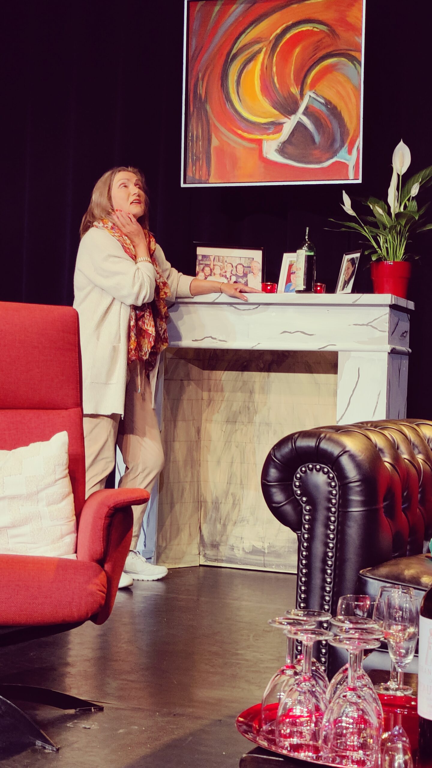 De openingstunes na het doven van het zaallicht doen in eerste instantie vermoeden dat er een soepel kabbelend wijnavondje op het programma staat. Het prominent aanwezige schilderij, dat de stijlvolle huiskamer domineert boven wat later een klein huisaltaar blijkt, is voor meer interpretaties vatbaar. Wijn maakt de tongen los tussen complexe vriendschappelijke (?) verhoudingen. Het echtpaar dat hier woont ontwikkelt zich door groot verdriet, blootgelegd door de voorstelling heen, zodanig twee kanten op, dat een scheiding onvermijdelijk lijkt. Een bekend fenomeen in het werkelijke leven bij het verlies van een kind! Gastheer Charles, vertolkt door Hans van Amsterdam, etaleert gaandeweg koortsachtig een fenomenale feitenkennis rond de geneugten van wijnproeverij. Het is prachtig om hem wanhopig zijn gevoelens te zien verbergen door telkens meer flessen uit zijn wijnkelder aan te slepen. Een kelder die overigens heel vernuftig zijdelings van het decor in beeld is gebracht en waaruit veel meer opgediept wordt dan de aanvankelijk cynische en kille gastvrouw, de met haar mimiek al zo expressieve Marijke van Amsterdam, kan verkroppen. Wijn staat hier symbool voor al wat bedekt is door de jaren heen: verbinding, maar ook splijtzwam tussen het getormenteerde echtpaar en hun pleegdochter, en de twistappel in het spel, de overleden zoon des huizes – gesymboliseerd door een exquise fles Petrus- dient sowieso niet ontkurkt te worden! Wyncko Tonckens als Bob, oude vriend des huizes, tracht goedmoedig en vol eigenwaan de gemoederen te sussen die zijn echtgenote (Cily Banus) vilein en quasi onschuldig blijft opschudden als rivaliserende carrièrevrouw en moeder. Tonckens is als acteur op zijn plaats in deze rol van nog net niet lallende levensgenieter; voor hem valt het leven soepel, voor haar met haar pretenties wrang…Ongewenste gast tegen wil en dank, Ed, gespeeld door Hans van Netburg, blijkt de stem van het geweten al eens vergeefs te hebben opgerakeld, maar wordt hier ditmaal in overtroffen door aangewaaide adoptiedochter Eveline (Caroline van der Zalm) die ondanks haar eigen mentale beschadiging met haar sprankelende verschijning kleur, licht en zelfs verzoening brengt in alle duistere onderlinge relaties en oud zeer. De eindscène waarin de twee in uiterste frictie levende moeders breken en zich verzoenen, is prachtig klein aangrijpend en geloofwaardig.